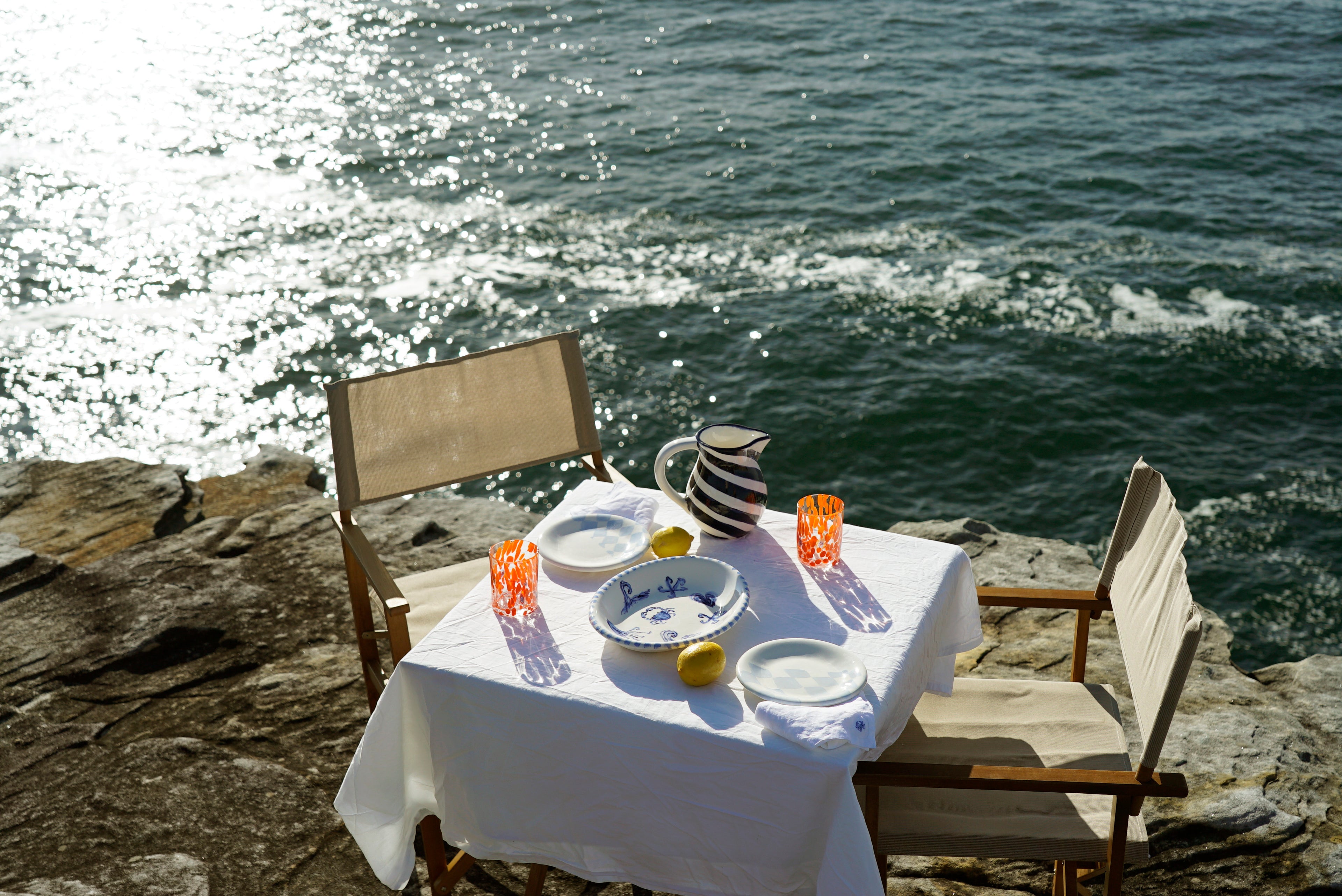 Embodying the radiant spirit of the Mediterranean coast, introducing the 'Le Soleil' Sarong. The original print has been hand painted with oil on linen in Collaboration with Land Essentials